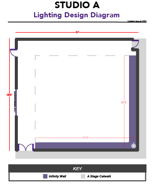 Rentals of Studio A include access to the main breakroom, two wardrobe-and-make-up rooms, the production office, and Studio Manager services.