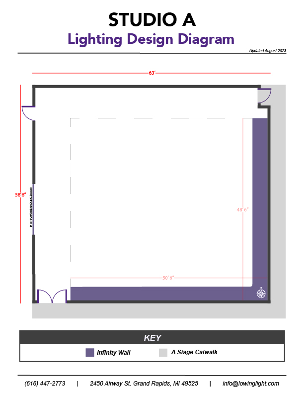 Note that lights, crew, painting, set storage, and equipment (other than a 16-foot ladder) charges are not included in the rental. Make sure to discuss your lighting, equipment, and crew needs with us before closing your production budget.